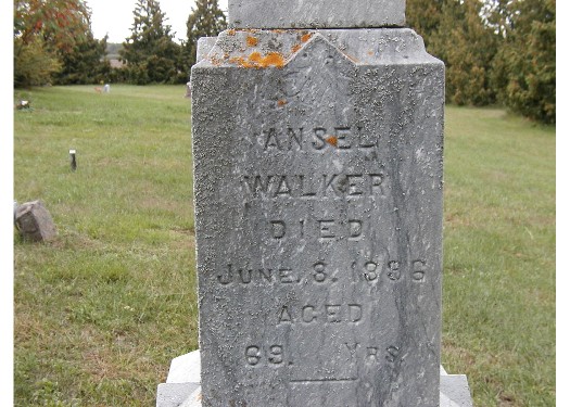 Ansel died June 8, 1896, 69 years Ansel Walker Gravestone