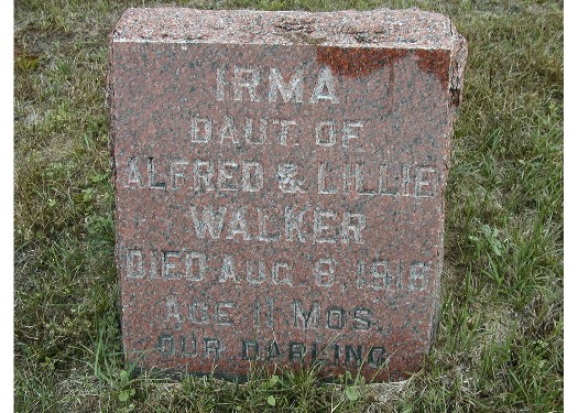 Irma daughter of Alfred & Lillie d. Aug 8, 1916 age 11 months Irma Walker Gravestone