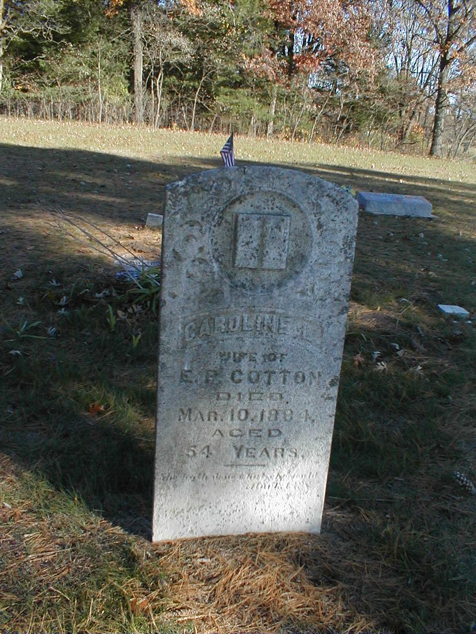 died March 10, 1884, wife of EP Cotton, aged 54 years Caroline Cotton Obituary