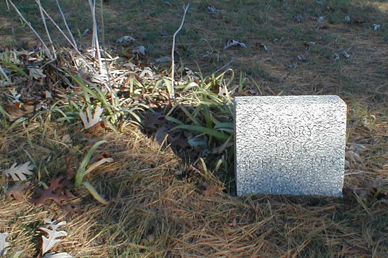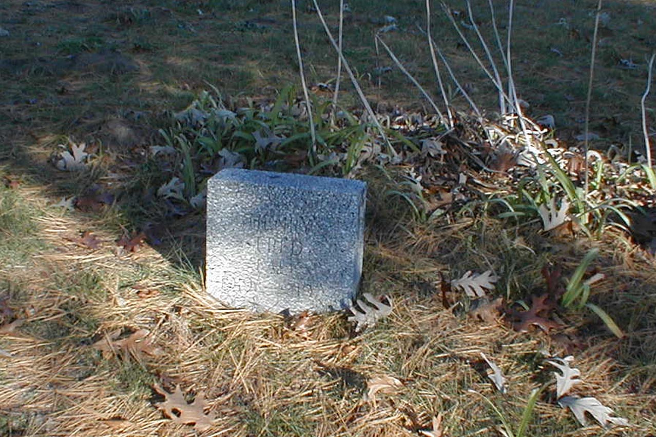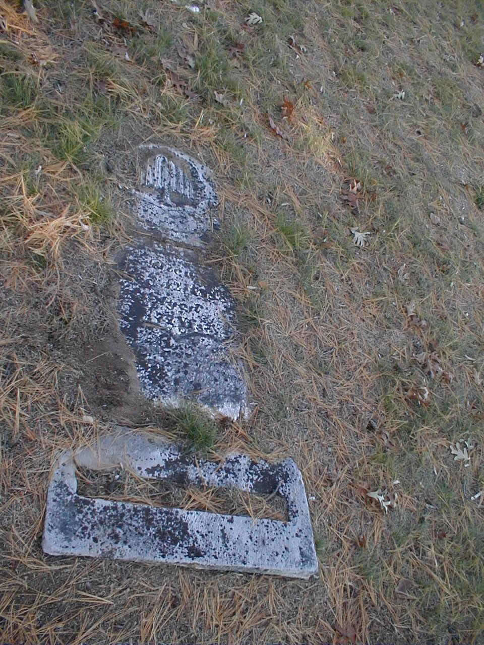 "In Memory of Polly Ames who died on January 6, 1866, aged 71 years, 11 months and 13 days." Gordie Klaus transcribed this stone in Sept. 2005. There is a foot stone and there doesn't appear to be a headstone, however, about two inches under the ground I found the Ames stone.