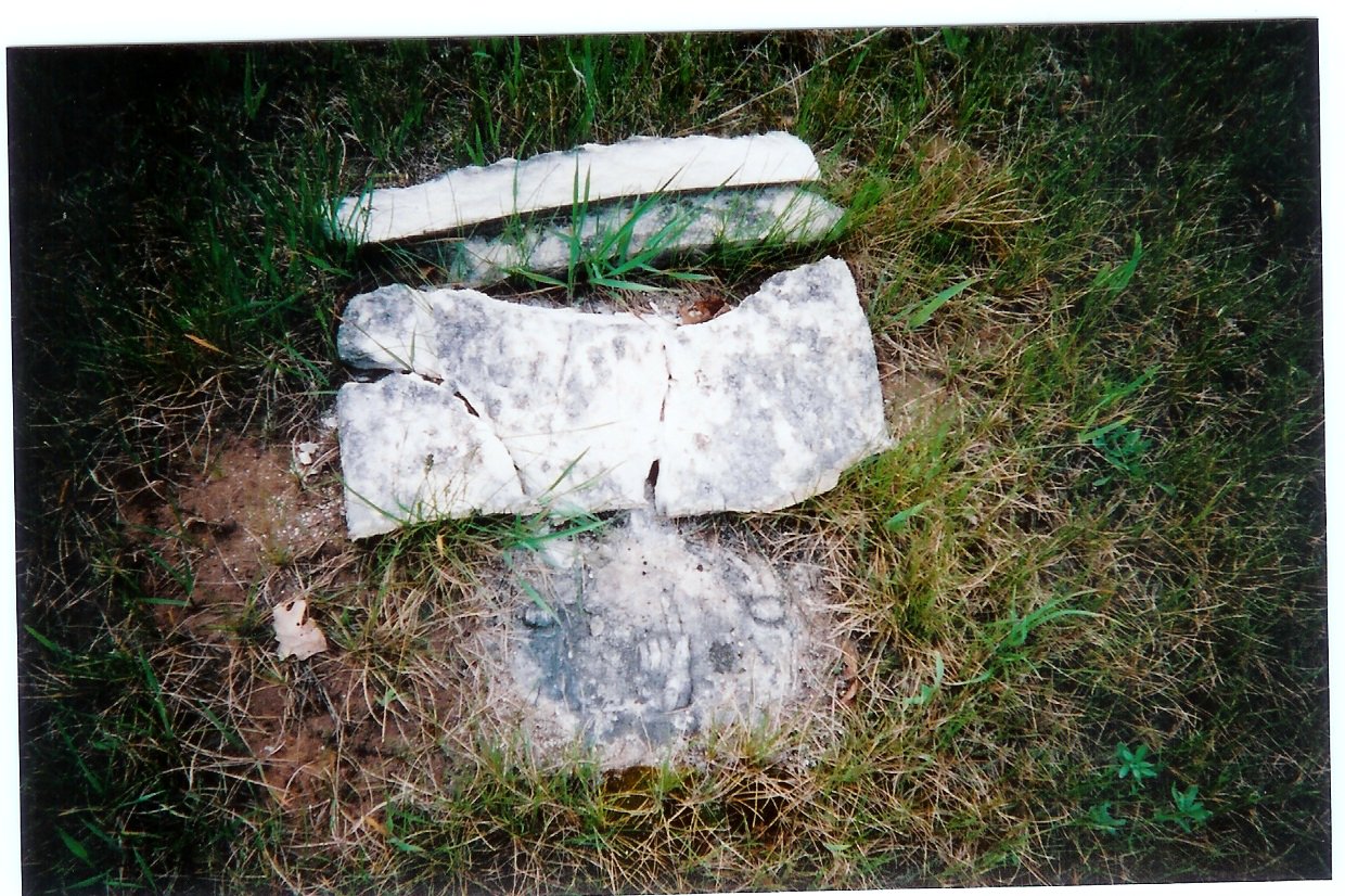 Elizabeth wife of G. W. front of stone and back of stone Estimated date of birth is 1824 to about maybe the year of 1856 or 1857 Elizabeth's dates are buried under ground since the stone is broken