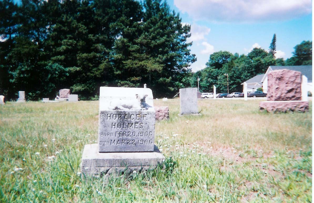 Horace Feb 20, 1906 - March 22, 1906 (son of Edgar and Lottie Holmes)H F Holmes' tombstone photo