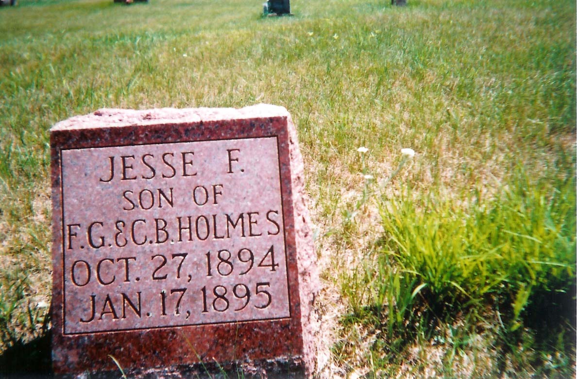 Jesse F. son of F. G. & C. B. Oct 27, 1894-Jan 17, 1895 J F Holmes' tombstone photo