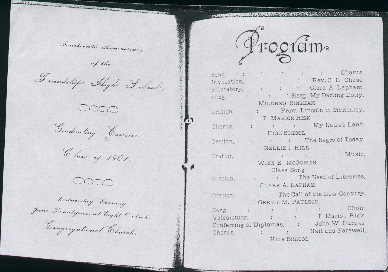 1901 graduation photo and 1901 Friendship High School graduation announcement