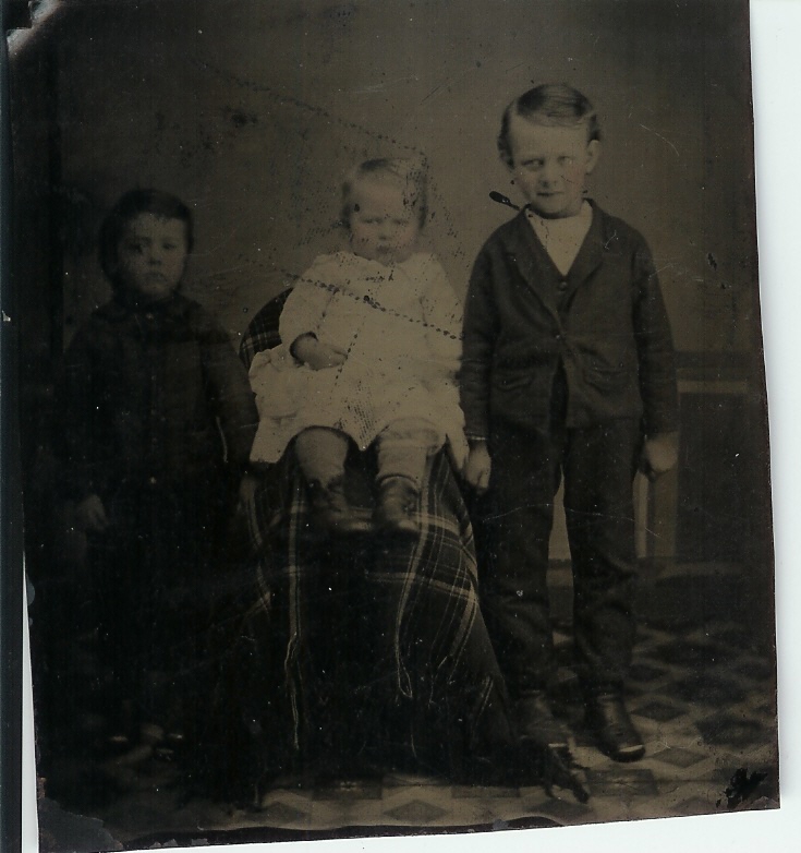 Source & Description: Picture of George and Matilda Alzina (Smith) Atchey's 3 sons- George Henry, William Russel, and Louis Richard all of whom were born in Quincy, Adams County, Wisconsin. Left to right: William Russel (born March 2, 1878), Louis Richard (born May 6, 1880), and George Henry Atchey (born October 15, 1875). This is a tintype picture taken around 1882. Contributed by Shannon W.