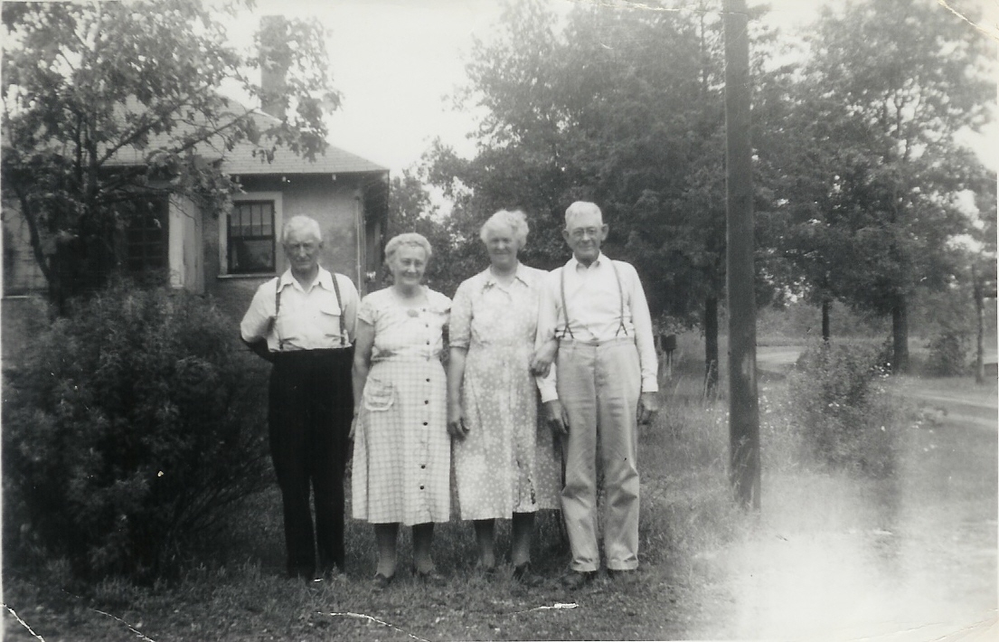 Attached is another picture of 4 of 5 of George and Matilda Alzina (Smith) Atchey's children. Left to right: Louis Atchey, Laura (Atchey) Vogt, Grace (Atchey) Wehner, and George Henry Atchey. Laura and Grace lived in Adams County for the rest of their lives while George lived in Nebraska and Oklahoma and Louis lived in Illinois. I believe this picture was taken in the 1930s in Adams Co. Contributed by Shannon W.