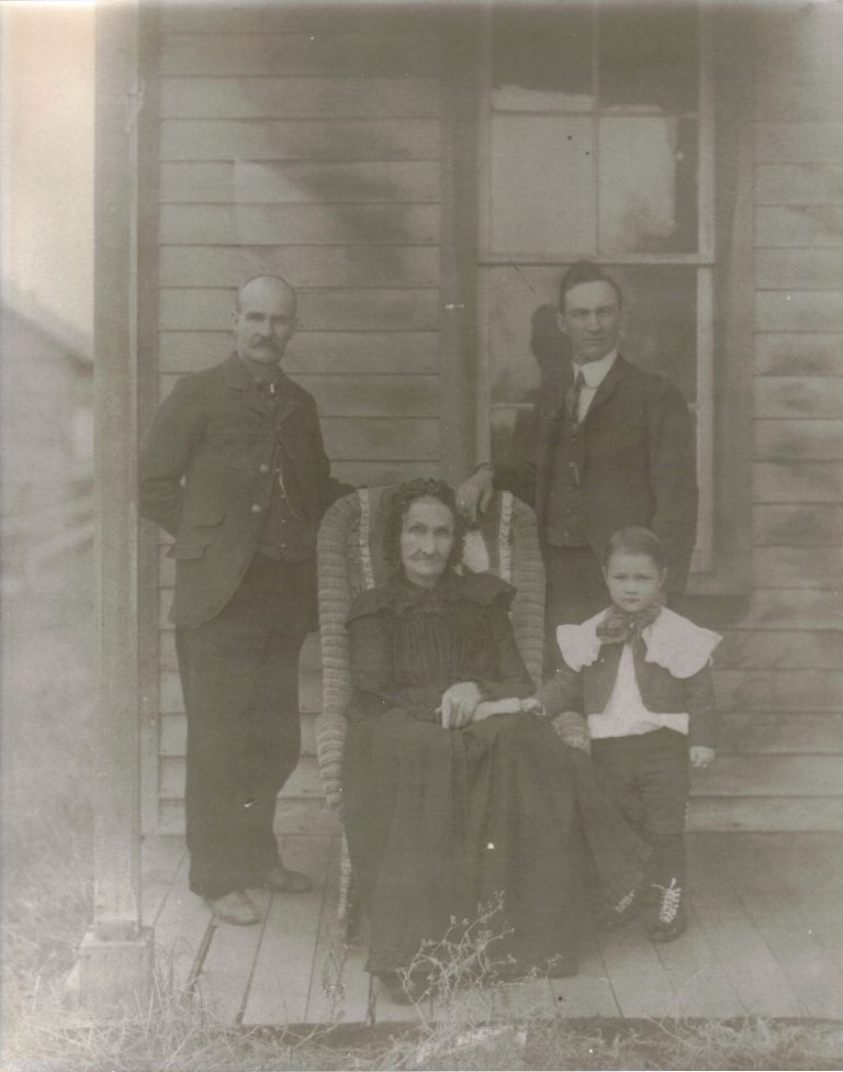 Source & Description: Mark (Niles) Newstrom sent this 4-generation photo featuring Jane Hadlock Niles. She is the wife of William D. Sr. Clockwise from her are Jane, Royal Stilwell, Victor Hartman and RB. Judging from RB's age, the photo is from 1903 to 1905.