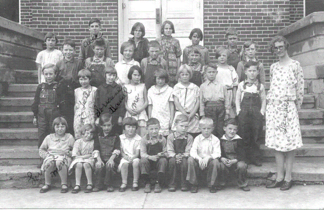 Charles W. Scott's family, with six children, attended the school and his son Warren A. Scott family, with eight children, attended the school too. The teacher on the picture is Orin Strand ( the tall one in the middle) and Charles Daniel Scott is the second from the left. His father Clarence Ray Scott attended this school too.