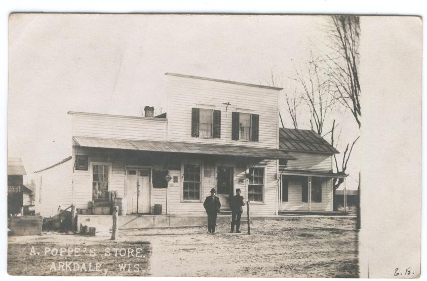 An old postcard of Poppe's Store in Arkdale Wisconsin