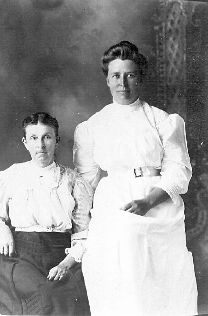 Source & Description: Jackie Cairns' gr grandmother Harriet Woolsey Niles and Mary Angeline Clapp Woolsey, wife of William H. Woolsey. Harriet is on the right. Probably Easton Adams County, WI, early 20th century.