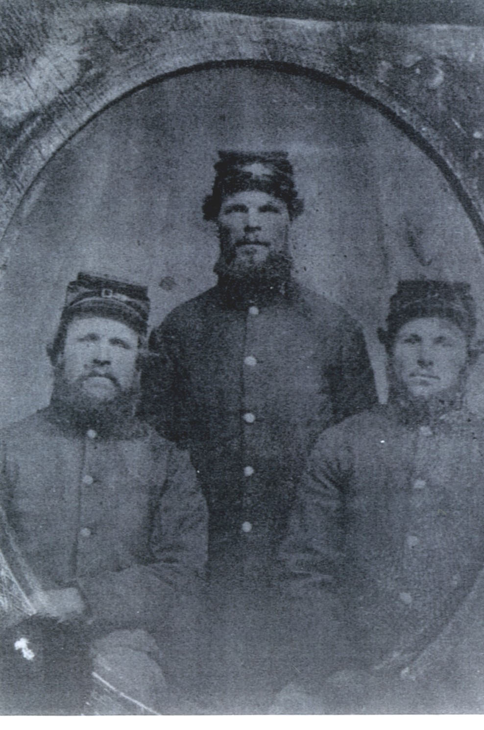 enlisted in the Civil War. (Left to right is Almon Webster, William Lathrop, and Erwin Rider). Edward going Company G, Calvary and William going in the 36th Infantry,Union, and the two friends, Almon and Erwin going in the 16th Regiment 6th Division Union, Wisconsin Infantry, Company E.