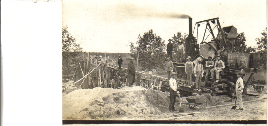 The bridge was built in 1911. The photo of the crew building the bridge of Chicago northwestern over Buffalo Lake was