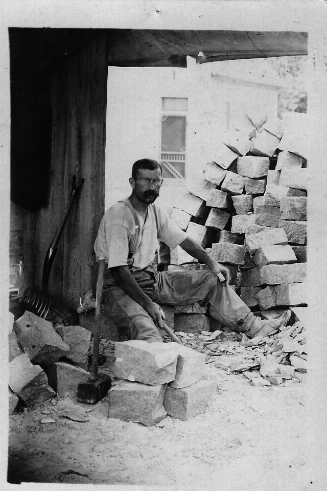 Another image, of a single laborer in the quarry. The man in the single foto is probably Linda (Wilde)Krenz's father and he appears to be in the group foto on the other card. Linda Krenz was a close friend of my
