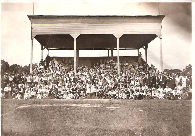 Sent by Eugene Gerbitz, from his family's collection of photos and postcards of the Green Lake county area. Can anyone identify that grandstand? There were some musicians with
