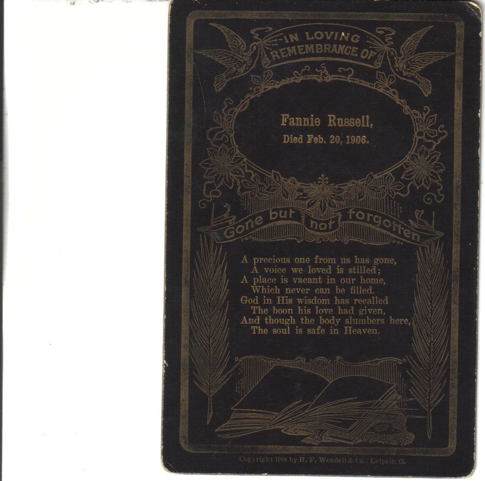 in 1914 from appendicitis. Both buried Underhill cemetery, Packwaukee.